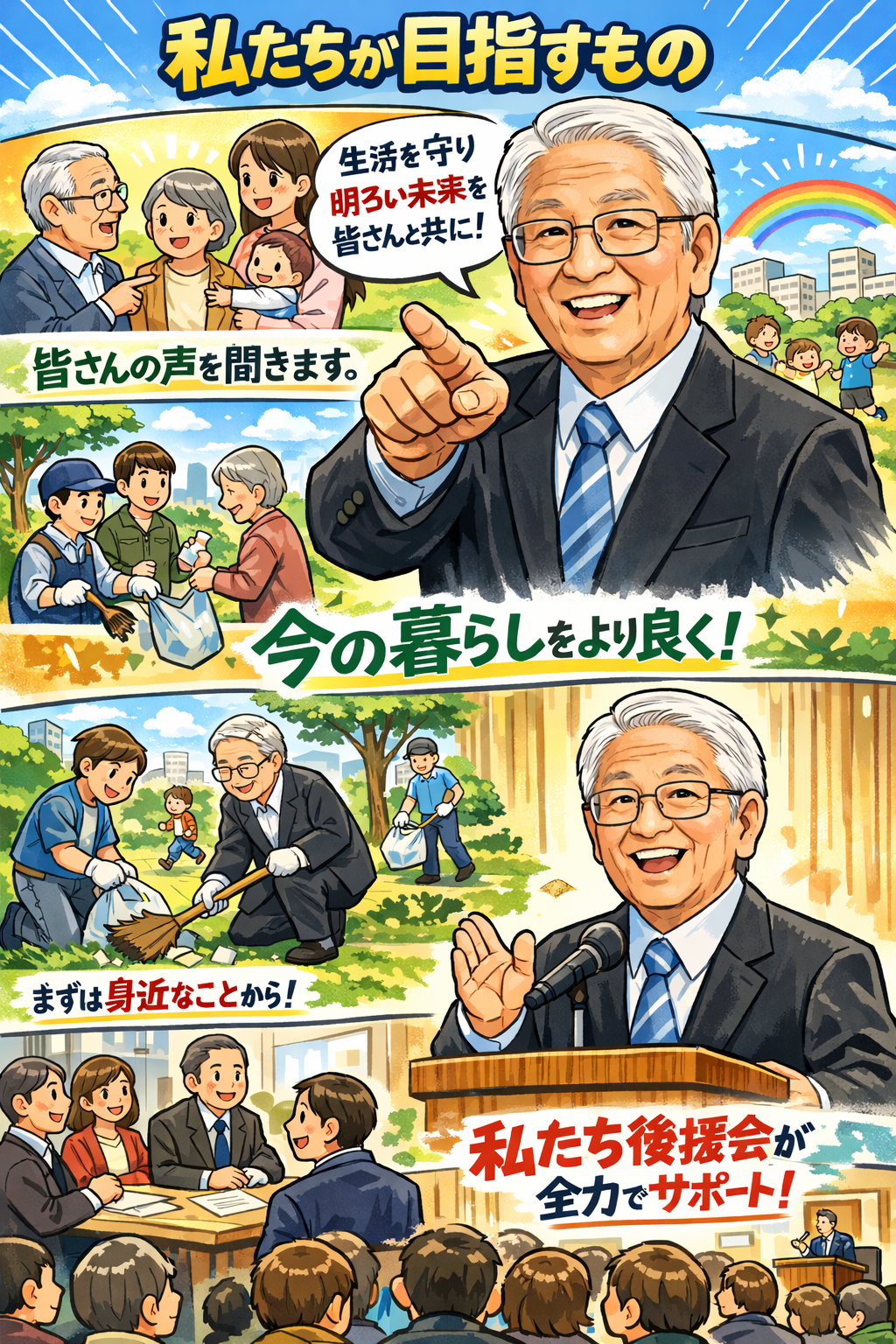 高梨忠博後援会は、あなたの声を高梨忠博に届け、明るい「夢」と「笑顔」がある町づくりを目指します。